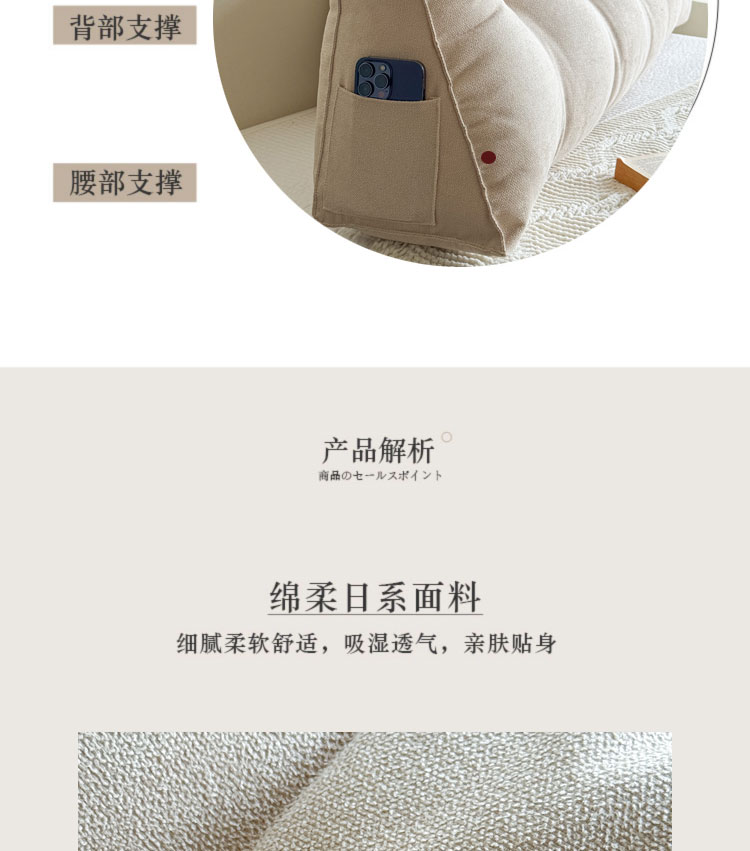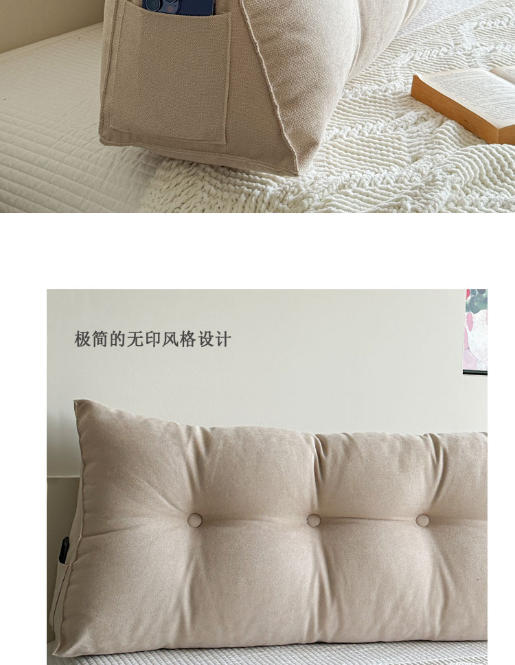 星致家 日式极简榻榻米软包ins北欧床头靠垫纯色靠背床上大长靠枕