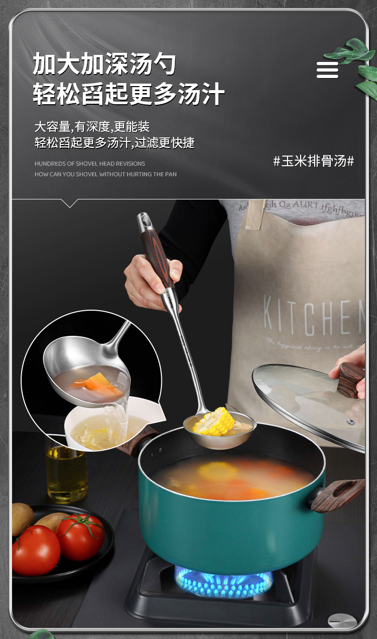 锅铲套装316不锈钢厨房炒菜铲子家用汤勺炒菜勺漏勺线漏厨具全套